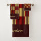 Cute Gold And Burgundy Squares Geometric Pattern Bath Towel Set
