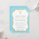 CUTE GOLD CROSS pretty baptism fancy polkadot blue Invitation