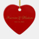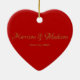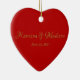Cute gold red heart custom script names date ceramic ornament