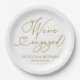 Cute Gold Script We're Engaged Engagement Party Paper Plate