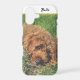 A phone case with a cute image of a Golden Doodle. The background, image and text can be personalized. Original artwork by W.B.