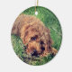 A ornament with a cute image of a Golden Doodle. The background, image and text can be personalised. Original artwork by W.B.