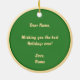 A ceramic ornament with a cute image of a Golden Doodle. The background, image and text can be personalized. Original artwork by W.B.