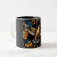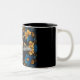 Cute Golden Hummingbirds on Black & Blue Flowers Two-Tone Coffee Mug