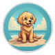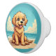 Cute Golden Puppy at Sunny Beach Scene Ceramic Knob