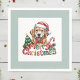 These Golden Retriever Christmas paper napkins are the perfect addition to any family dinner. This design is complete with an adorably cute golden retriever watercolor graphic. The golden retriever dog is wearing a Santa hat and is surrounded by various Christmas decorations. The background color is light blue.