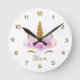 Cute Golden Unicorn Personalised Round Clock
