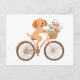 Cute Goldendoodle Dog Biking Spring Flowers Postcard