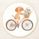 Cute Goldendoodle Dog Biking Spring Flowers Round Paper Coaster