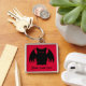 Cute ferocious black vampire bat on a red background and printed on a cool premium square key chain with space for your name. This will print out more clearly than shown in the compressed preview image.