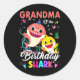 Cute Grandma Of The Birthday Family Shark Boy Girl Classic Round Sticker