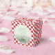 These Cute Grasshopper Bug Birthday Thank You Favour Boxes feature all-around red and white chequered background, capturing the essence of a charming picnic scene, with a green grasshopper hidden in the tall grass with ladybugs crawling about. Personalise with a Thank You message and a name.