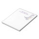 A notepad with a cute illustration featuring a grayish purple dinosaur.