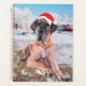 Cute Great Dane Dog Sitting In Snow Christmas Hat Planner