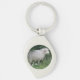 This awesome keychain features a photograph of a cute fluffy sheep. The sheep is surrounded by wild flowers and long grass and is greedily eating some leaves. It has a thick white coat of wool and a cute black nose.
