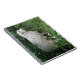 This awesome notebook features a photograph of a cute fluffy sheep. The sheep is surrounded by wild flowers and long grass and is greedily eating some leaves. It has a thick white coat of wool and a cute black nose.