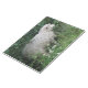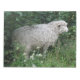 This awesome notepad features a photograph of a cute fluffy sheep. The sheep is surrounded by wild flowers and long grass and is greedily eating some leaves. It has a thick white coat of wool and a cute black nose.