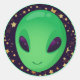 Cute Green Alien On Gold Stars Fun Classic Round Sticker