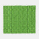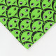 Bright green and black fleece blanket with a pattern of cute little aliens.