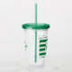 Cute Green and White Striped Design Single Initial Acrylic Tumbler