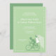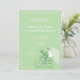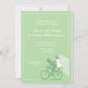 Fun and modern , this stylish wedding invitation features the cutest boy and girl couple silhouette on a bike together on a peapod green background. The little girl is wearing a beautiful veil that flows off the page. This wedding invitation is perfect for your special day. Matching save the date cards, response cards, postage and more along with other colour options are available in our shop.