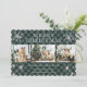 Beautiful green buffalo plaid photo collage holiday card featuring snowflakes and stars. Easily personalise this cute holiday card with your photos and text.