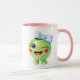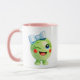 This design shows a cute green character illustration with a smooth glossy surface and rounded proportions. The character features a playful facial expression, large expressive eyes, and a small decorative bow on top, centred against a clean and neutral background.