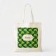 A canvas tote bag with a cute repeating pattern with olive green clovers on a dark green background. A fancy vintage frame layered over top with your name inside. Frame has a faux gold foil border.
