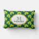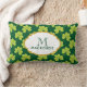 Cute Green Clover Shamrock Pattern with Monogram Lumbar Cushion
