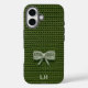A cute little green bow is crocheted onto a darker green crochet background... on any phone case you like! This texture isn't real, of course, this is a faux crochet texture printed on the case. This design is totally fun and unique, and anyone who loves a cozy grandma or a sweet girly nostalgic style will love it! Edit the text to customize this phone case with your initials, name or simple monogram. Or remove the text for a more minimalist look. Personalize and buy this pretty phone case as a gift for a loved one who loves a girly coquette aesthetic, and a cozy grannycore style :) There are 7 different colors of this faux crochet designs in this collection.