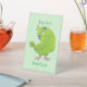Cute green curious parakeet cartoon illustration pedestal sign