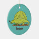 Cute green dimetrodon cartoon illustration ceramic ornament