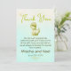 Express gratitude with our 'Cute Green Dinosaur Boys Baby Shower Thank You' card. Featuring a charming watercolor green dinosaur, this design adds a playful touch. Customise with parent's or child's names for a personal touch. The reverse showcases a matching pattern. Elevate your co-ed couples' baby shower with this delightful thank you card, a perfect way to share appreciation!