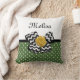 Cute Green Dots Yellow Rose Chevron Bow and Name Cushion