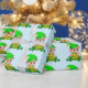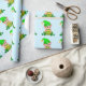 Cute green baby elf with a pot of gold on light blue Gift Wrapping Paper.