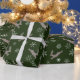 Celebrate the holidays as you wrap presents with this pretty winter green Christmas gift wrap. This holiday wrapping paper features a dark and festive green background with a pattern that has flying reindeer and different kinds of snowflakes.