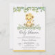 Cute Green Foliage Boys Lion Baby Shower Invitation