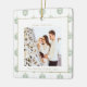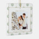 Green Gingham Plaid Watercolor Photo Square Christmas Holiday Ornament - Elegant custom family photo textured watercolor illustration design. Personalise with your family photo, name, and year.