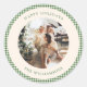 Cute Green Gingham Plaid Custom Photo Greeting Classic Round Sticker