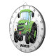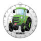 This cute green smiling tractor is ready for work on the farm! Drawn in fun cartoon illustration style.