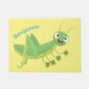 Cute green happy grasshopper cartoon doormat