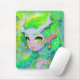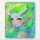Cute Green Horned Wood Elf Anime Girl Mouse Pad
