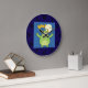 keep time in a playful way with this cute green monster wall clock. the vibrant cartoon illustration of a happy horned creature and a yellow boo message makes it a fun addition to a kids bedroom nursery or playroom. featuring a bright moon and bats against a starry sky this spooky mascot clock brings a cheerful halloween vibe to your home decor all year round. it is a whimsical and practical gift for children who love monsters and colorful character art.