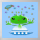 Aliens Huggs Poster with Saturn and Stars in Bubbles