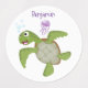This happy green sea turtle is blowing bubbles! Drawn in cute cartoon illustration style.