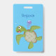 This happy green sea turtle is blowing bubbles! Drawn in cute cartoon illustration style.
