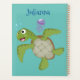 This happy green sea turtle is blowing bubbles! Drawn in cute cartoon illustration style.