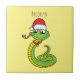Cute green snake with santa hat cartoon ceramic tile