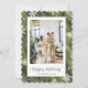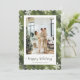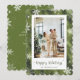 Beautiful green photo holiday card featuring snowflakes, stars and snowfall on a faux green foil background. Easily personalise this photo holiday card with your photo and text.