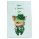 A St. Patrick's Day gift bag with a cute green illustration of a pig standing up on his back feet, dressed in fancy hat, vest and pants.